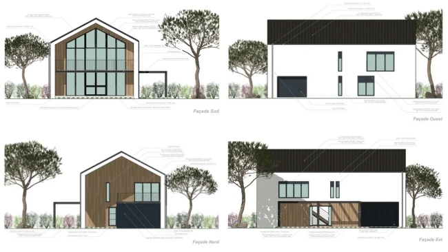 - Les plans de façades sont générés à partir de la 3D de la maison.